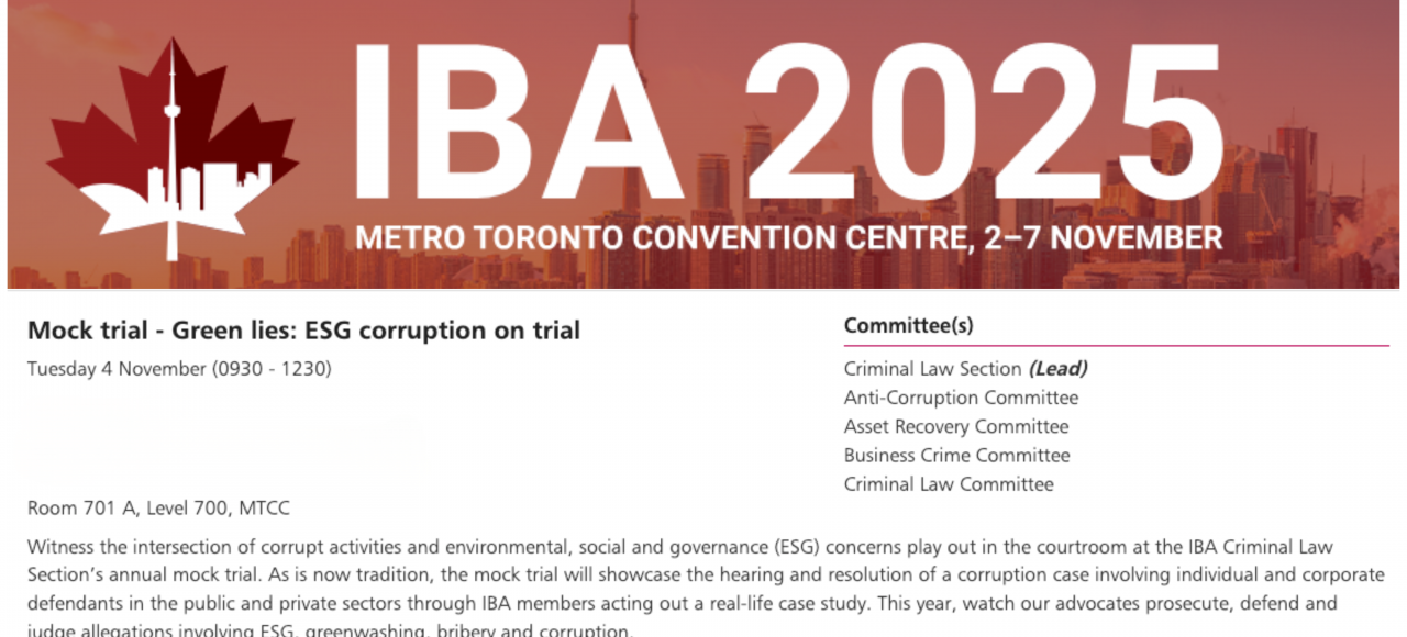 Green lies: ESG corruption on trial’ is the mock trial pending before the “International Bar Association Criminal Court of Toronto” which will take place tomorrow 4 November with the Studio Isolabella among the participants. The mock trial will simulate the hearing and resolution of a corruption case related to bribery, false documentation and fraud in the...